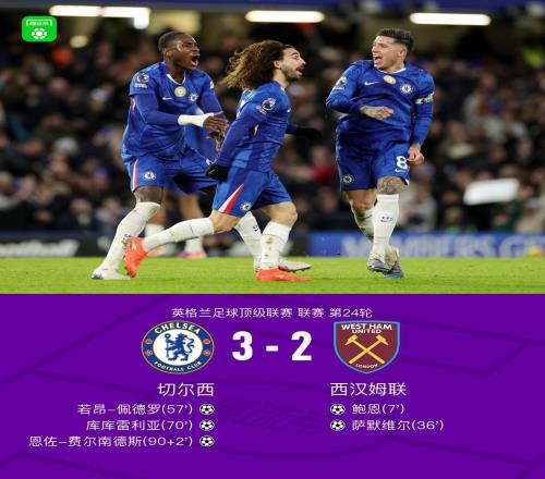 剑南春切尔西32逆转西汉姆联,佩德罗传射建功,恩佐绝杀 -